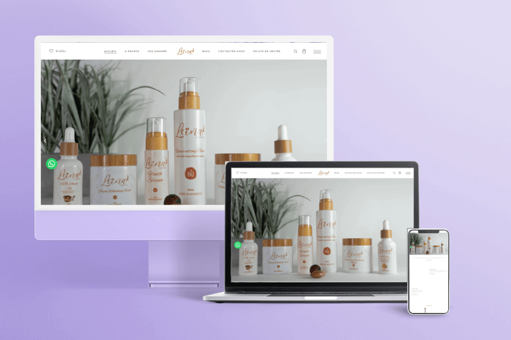BrandingSite WebLEINA COSMETICSLeina Cosmetics a fait appel à nos compétences pour la création de leur site Internet. Pour améliorer ses performances et optimiser son référencement naturel, le site leinacosmetics.com a été entièrement repensé. Meilleure expérience utilisateur, gestion du site facilitée, bonnes pratiques SEO, tout a été mis en place pour obtenir un site web de qualité. L’identité visuelle de la marque a également été travaillée, pour accompagner la création du site Internet. Nous avons donc conçu un nouveau site web et une nouvelle identité visuelle, adaptés à la marque. visitez le site webclient :LEINA COSMETICSAnnée :2022catégorie :Branding,localisation:RABAT